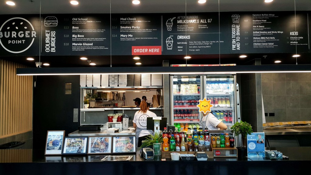 Burger Point is located at Marina Square, Wentworth Point. I came to know about this restaurant when I was having a walk across the Bennelong Bridge one fine day. The restaurant is located at the corner of Marina Square facing the bridge. It’s only about less than 100m walk after you’ve crossed the bridge. The restaurant looked fresh and clean from the outside so I thought I would give it a try.