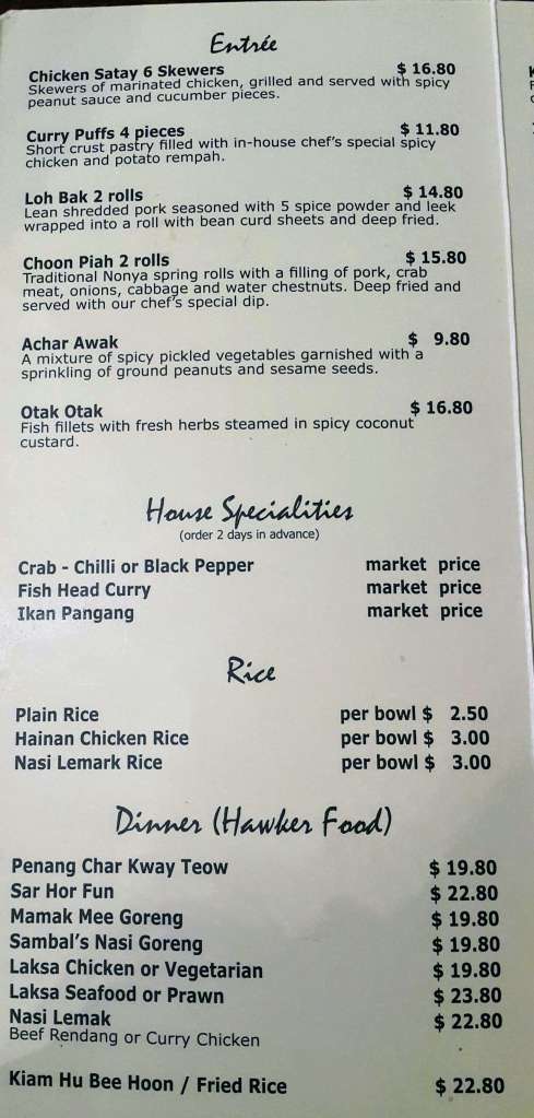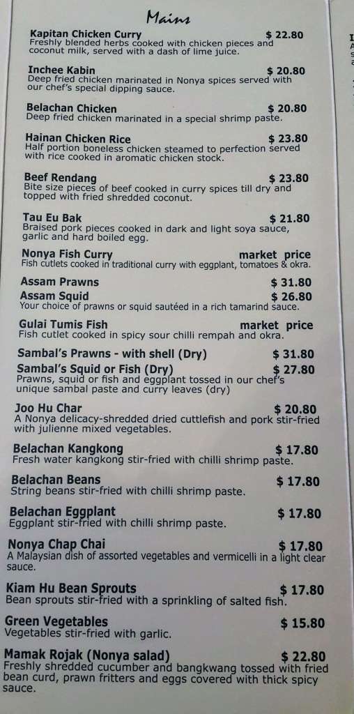 This restaurant is not easy to spot because it is tucked away at the end of a block of shops. I stumble across this restaurant when I was having dinner at McDonald which is located on the other end of the same block. If you are driving, there are sufficient parking at the back of the building. According to their website, they serve authentic Malaysian Nyonya and hawker style food. They have a 4.1 stars in Google review.