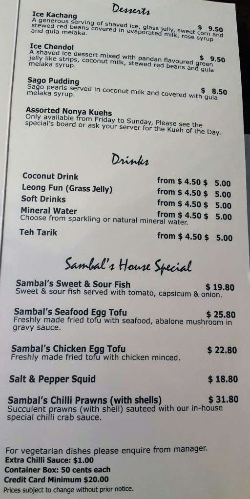 This is my third time to Sambal and even though it is slightly pricey, I would come back again to try other dishes. It is a perfect spot for family lunch and dinner and for those who would like a taste of home.