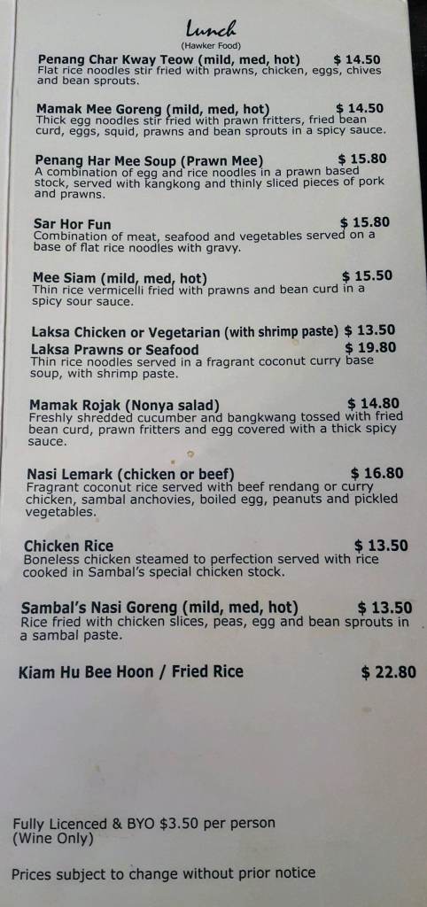 - BYO: Yes, A$3.50 pp. wine only