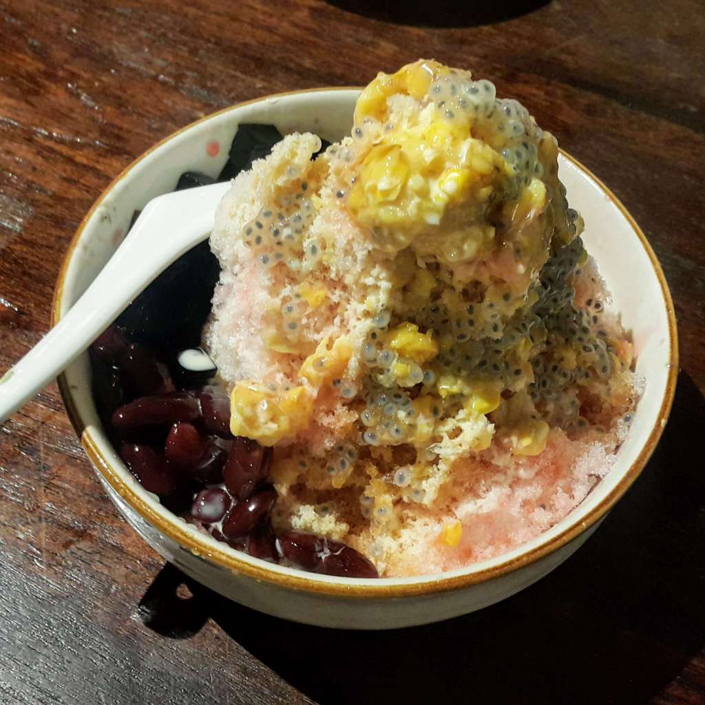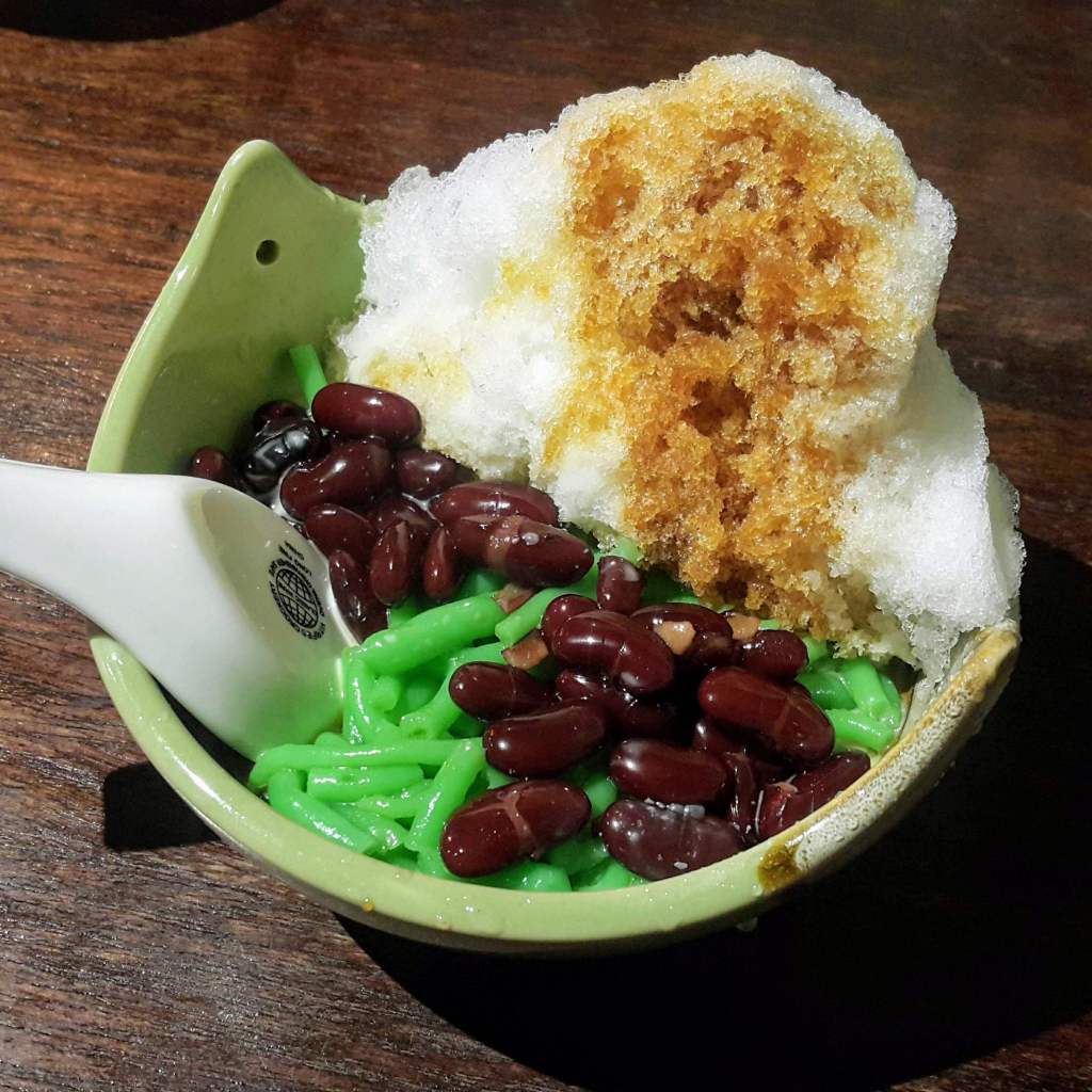 - Another popular shaved ice dessert, ice cendol is a shaved ice dessert mixed with red bean, pandan flavoured green jelly-like strips, coconut milk and gula melaka syrup. Similar to the ice kacang, they are tasty but slightly pricey. The cendol was silky and made well – 4 stars.