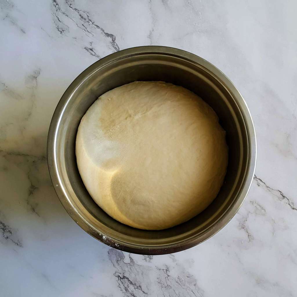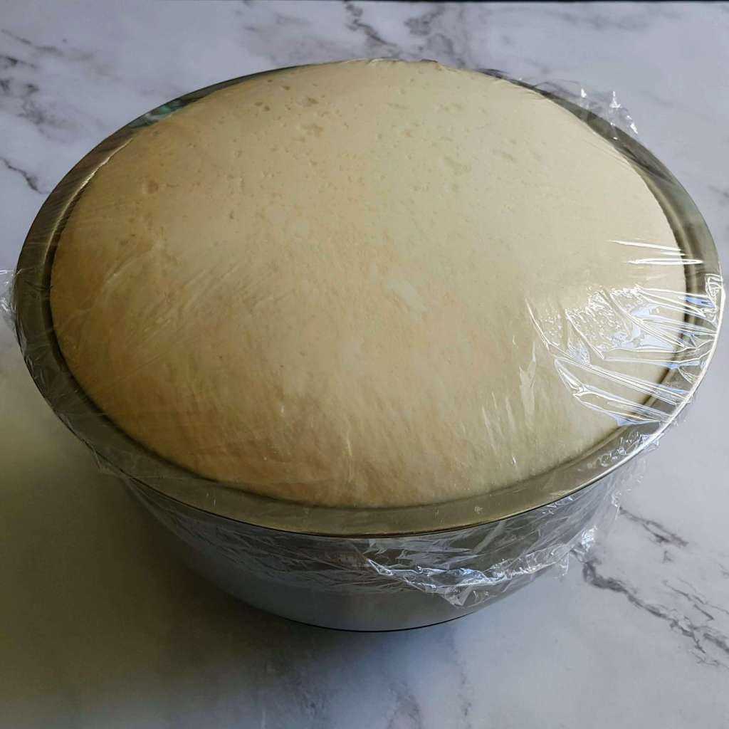 - Shape it into a ball and place the smooth dough in a lightly oiled bowl. Turn the dough around so that it is all covered with the oil. Cover it with a cling film or a damp towel. Let it rise at a warm place for about an hour or until doubled in size. (note 3)