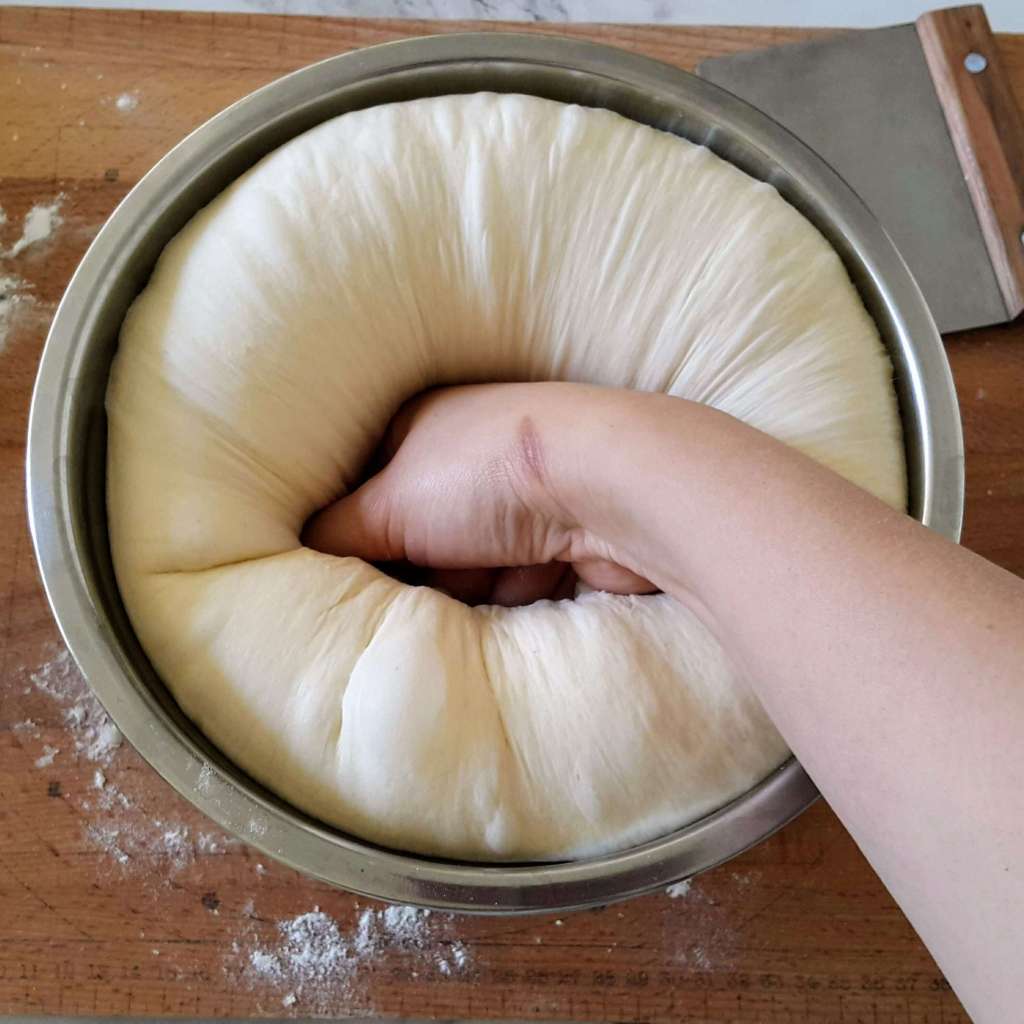 For a dough to be ready for first proofing, kneading can take anywhere between 5-10 mins. However, it’s all depending on the kneading method, whether by hand or machine, kneading speed and the size of the dough. So the best test method is using the windowpane test. When your bread dough is feeling stretchy, after 5 mins of kneading, take a small section of the dough and try stretching the it thinly. As a guide, a dough made from strong wheat flour should stretch thinly enough to let the daylight through.