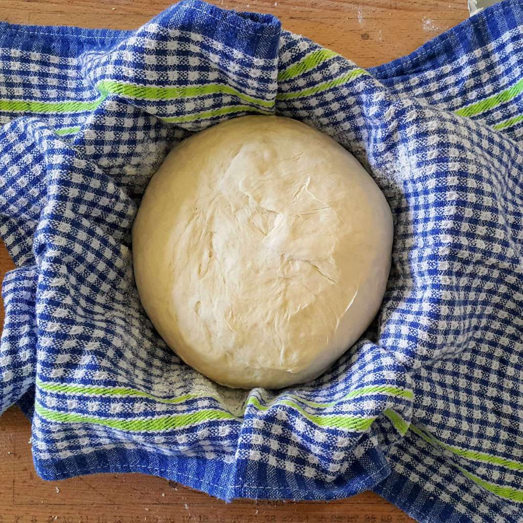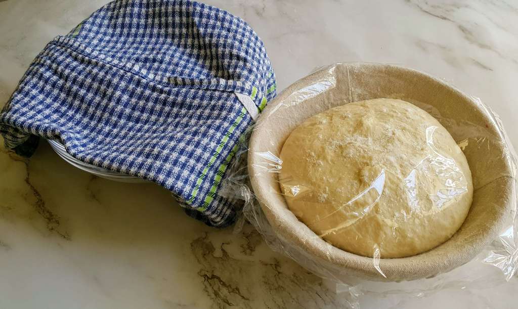 - Place the shaped loaf onto a bowl lined with a floured tea towel. Cover the loaf and let it rise for about 45 mins or until it doubled in size again.