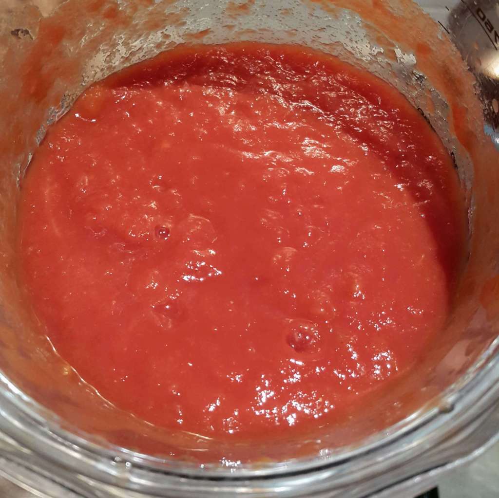 - Process the canned tomatoes to a puree in a food processor.