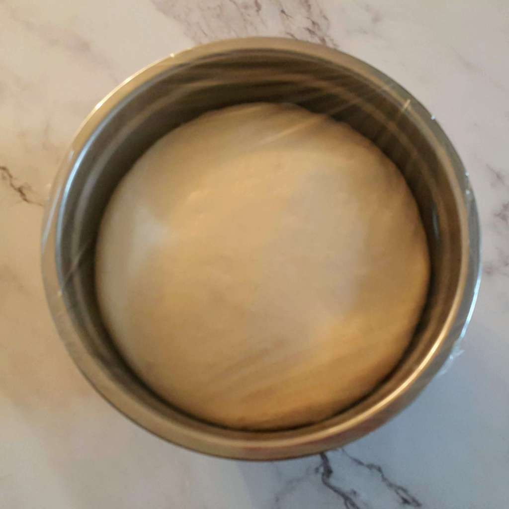 - Oil the bowl with some olive oil so the dough won’t stick to the bowl. Put the soft dough into the oiled bowl and brush the top of the dough with some olive oil to prevent it from drying out. Cover with a cling film and leave to proof until double in size, about 1 hour.