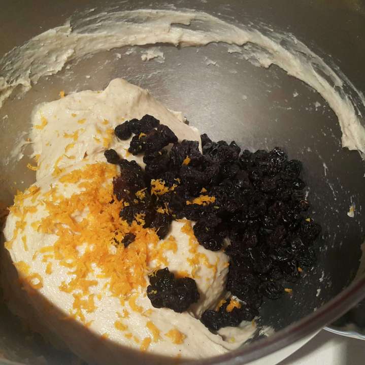 4. Add in raisins, orange zest and mixed spice and mix on low speed