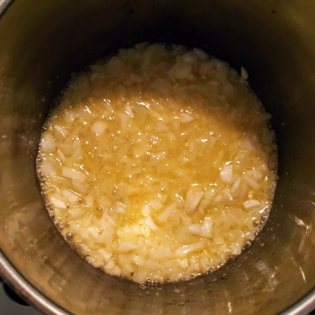 2. Stir in the onion and garlic and cook until soften