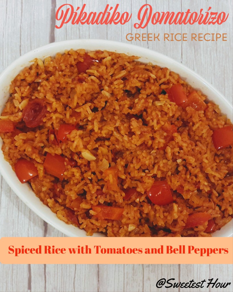 Spice up your weekend dinner with this delicious tomatoes and bell pepper rice dish. Serve it hot, accompanied by olivesSpiced Rice with Tomatoes and Bell Peppers - Pikadiko Domatorizo